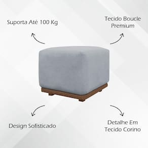 Puff Decorativo Para Sala Dalilla Boucle Persa Cores - Concreto, Bouclé