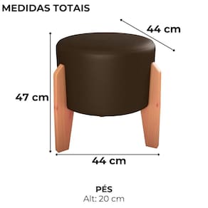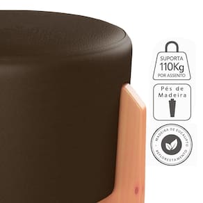 Puff decorativo Luxo, design moderno com um toque de sofisticação para o seu ambiente. Estrutura em Madeira de Eucalipto (de reflorestamento) e MDF, estofado com espuma D20 e revestido em Corano (material sintético que imita couro). Seu diferencial está nos pés em madeira maciça, com formato geométrico que traz estabilidade e estilo único. Suporta até 110 kg. Este produto será entregue em 01 volume.