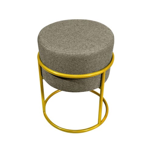 Tipo: Puff Redondo Modelo: Decorativo Cor Tecido: Bege Tecido: Linho Cor da Base: Dourado Base em Ferro