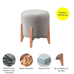 O Puff Redondo para sala de estar é revestido em tecido Suede, base em madeira eucalipto deixando os pés aparentes trazendo um toque de modernidade, é o móvel perfeito para valorizar a sua decoração.