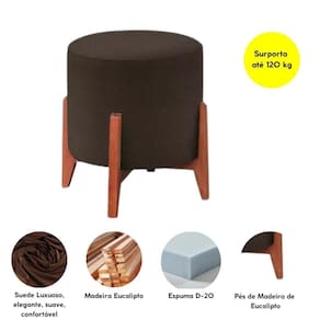 O Puff Redondo para sala de estar é revestido em tecido Suede, base em madeira eucalipto deixando os pés aparentes trazendo um toque de modernidade, é o móvel perfeito para valorizar a sua decoração.