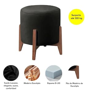 O Puff Redondo para sala de estar é revestido em tecido Suede, base em madeira eucalipto deixando os pés aparentes trazendo um toque de modernidade, é o móvel perfeito para valorizar a sua decoração.