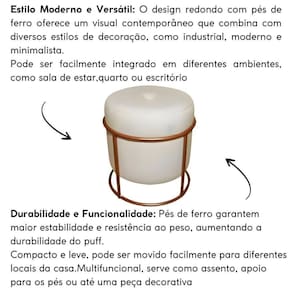 O puff decorativo é a escolha ideal pra você que busca mais conforto e elegância para o seu ambiente! Esse puff redondo possui um design único e versátil para compor diferentes espaços da sua casa, como sua sala de estar, quarto, escritório e recepção ou até para quando receber visitas e quiser um lugar extra para acomodar os amigos, é aquele item que consegue fazer toda a diferença nos momentos de descontração e receptividade.