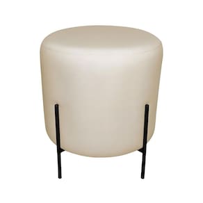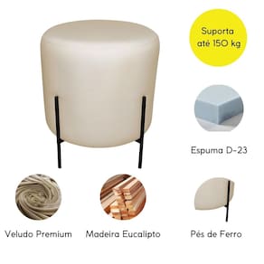 Puff Decorativo Redondo para Sala Pés De Ferro Elon Bege