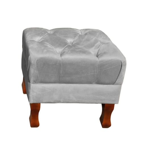 Puff Decorativo Retrô Luis Xv Quadrado Em Capitonê Suede - Marrom