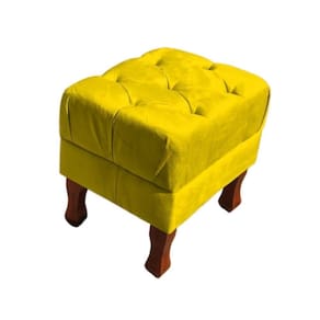 Puff Decorativo Retrô Luis XV Quadrado Em Capitonê Suede