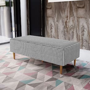 Pensando na praticidade do dia-dia, o Puff Decorativo Sala de Estar Bali W01 Base Ferro 120x50 cm Suede Pied Poule - Lyam Decor se faz perfeito para a sua ambientação! É extremamente confortável, ideal para quem procura por funcionalidade e beleza embutidos num único produto. Estruturado com espuma macia e de alta densidade e revestimento de excelente qualidade, além de seus belos pés de metal que arrematam muito bem toda a composição deixando-o ainda mais elegante.