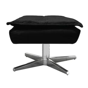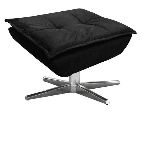 Puff Decorativo Sala de Estar Base Giratória Cromada Opla Suede Preto - Ibiza