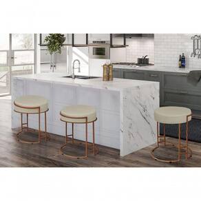 Puff Decorativo Estofado Sarah Em Tecido Veludo Metal Bronze Para Sala