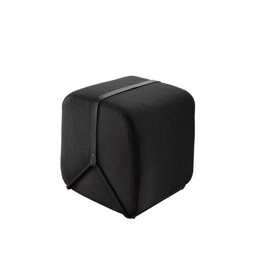 Puff Decorativo Slim Base Preto Fosco E Linho tramado Preto
