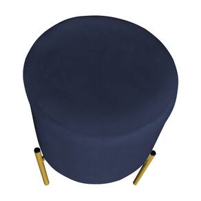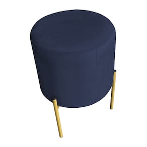 Puff Decorativo Soren Suede Azul Marinho Pés de Ferro Dourado - Pallazio