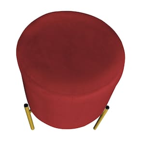 Puff Decorativo Soren Suede Vermelho Pés de Ferro Dourado - Pallazio