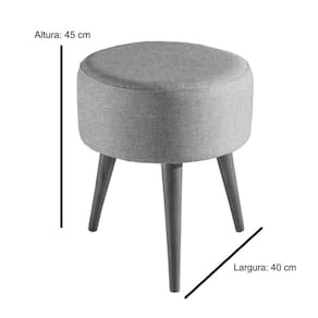 Altura 45 cm Profundidade 40 cm Largura 40 cm Peso 7 kg Formato do assento Redondo Peso suportado por assento 150 kg Tecido Linho Material da Estrutura Madeira Eucalipto reflorestada Assento Espuma D26 soft 4cm espessura Exige montagem? Não, apenas ajuste dos pés