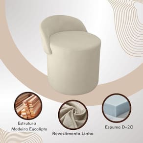 O estofamento macio oferece conforto imediato, ideal para relaxar, apoiar os pés ou receber convidados com charme. Versátil e elegante, o puff pode ser na sala, no quarto ou em espaços de convivência, adicionando praticidade sem abrir mão da estética.
