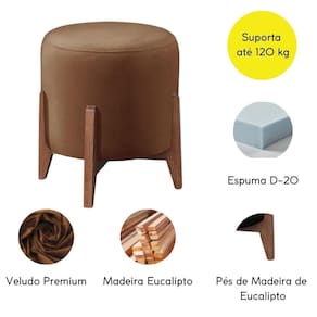 O Puff Redondo para sala de estar é revestido em tecido Veludo, base em madeira eucalipto deixando os pés aparentes trazendo um toque de modernidade, é o móvel perfeito para valorizar a sua decoração.