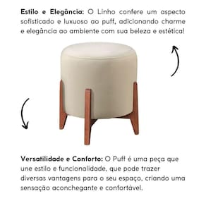 O Puff Redondo para sala de estar é revestido em tecido Linho, base em madeira eucalipto deixando os pés aparentes trazendo um toque de modernidade, é o móvel perfeito para valorizar a sua decoração.