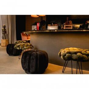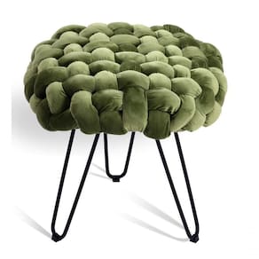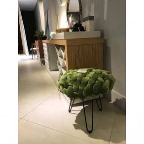 Puff Estofado Redondo Orgânico 0,50x0,50 mt Base Metal Tree Verde -