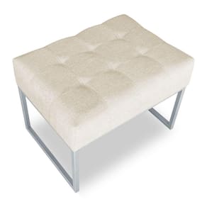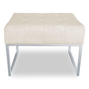 Puff Lisa Linho Base Metálica Industrial Prata - Pallazio Cor Bege