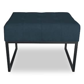 Puff Lisa Suede Base Metálica Industrial Preto - Pallazio Cor Azul Marinho