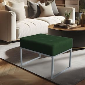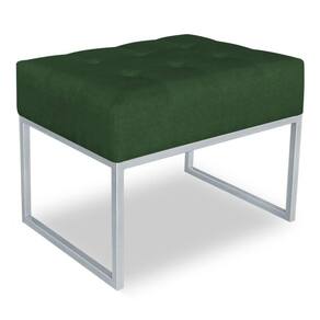 Puff Lisa Suede Verde Base Metálica Industrial Prata