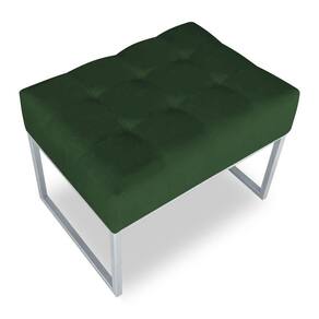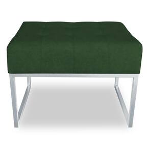 Puff Lisa Suede Verde Base Metálica Industrial Prata - Pallazio