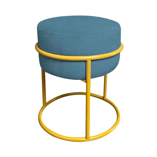 Puff Luma Linho Azul com Base de Aço Amarela - Azul Turquesa