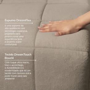 O sofá modular compactado torna o processo de compra de sofás uma experiência descomplicada e surpreendente, através das muitas possibilidades de design em um único sofá, apresenta um tecido selecionado por especialistas: um boucle sofisticado com alta resistência a arranhões de gatos, tornando-o pet friendly. Além disso, é de fácil limpeza e traz alta durabilidade. Na parte inferior possui fecho de contato, garantindo a união dos módulos do sofá. Com essa conexão rápida, você pode montar o sofá modular como quiser e ter a certeza de que os módulos permanecerão firmemente conectados. Ambiente Principal: Sala de Estar Cor: Taupe Cor do Produto: Taupe Escala de Brilho: Fosco Itens Inclusos: 1 Puff para Sala Linha ou Coleção: Easybox Manual de Montagem e Instalação: https://product-hub-prd.madeiramadeira.com.br/966367/documents/8340463c-d9ff-4dde-96fe-f90042506da22512599342817302205227883.pdf Marca: CabeCasa MadeiraMadeira Material da Estrutura: Polipropileno Necessita Montagem: Não Origem do Produto: Nacional Peso: 9,85 kg Possui Baú: Não Possui Pés: Não Recomendações de Uso, Manutenção e Limpeza: Para a limpeza diária do seu sofá, utilize o aspirador para manter o sofá impecável, para manchas, água e sabão neutro. Em caso de serviço contratado para a limpeza, recomendamos profissional para limpeza mais intensa. Considere a impermeabilização para proteção extra. Suporta Até (kg): 100 kg