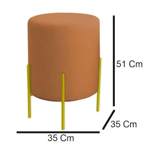 Puff Orgânico Boucle Thor Com Pés De Ferro Dourado Terracota -