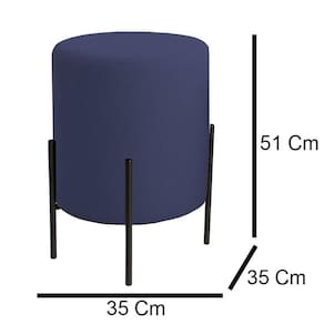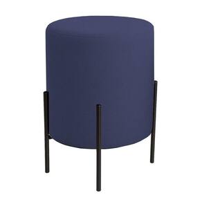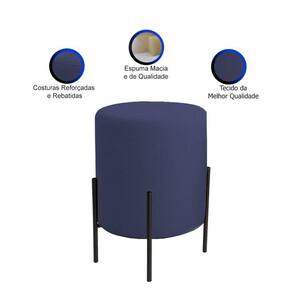 Puff Orgânico Boucle Thor Com Pés De Ferro Preto Azul Marinho -