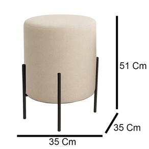 Puff Orgânico Boucle Thor Com Pés De Ferro Preto Bege -