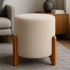Seu revestimento em tecido oferece toque agradável e visual elegante, enquanto os pés em madeira reforçam a estabilidade e agregam um toque natural e sofisticado ao móvel. Compacto e versátil, é uma excelente opção como apoio extra ou elemento decorativo.