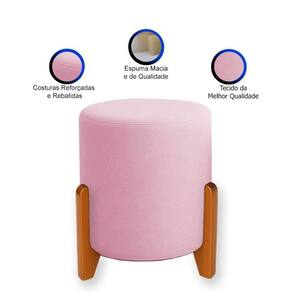 Puff Orgânico Boucle Thor Com Pés De Madeira Rosê - Rosa