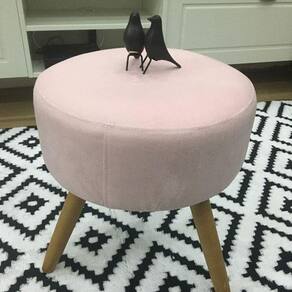 - puff redondo; - estrutura em madeira mdp - acabamento suede; - revestimento em espuma d 26 - 03 pés palito em madeira maciça envernizada - o produto vai com os pés desmontados sendo de fácil colocação (rosqueamento)