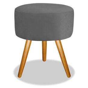Puff Puf Banqueta Magnus Redondo Cinza Pés Castanho