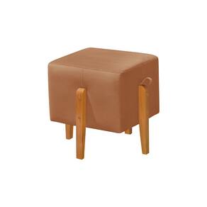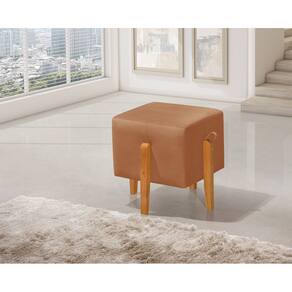 Puff Quadrado Pés em Madeira Maciça Fiji Veludo Terracota - Laranja