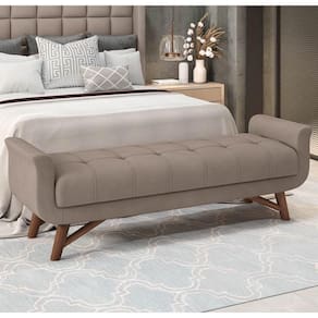Vamos completar o seu ambiente com um móvel elegante e aconchegante?! Aqui temos a opção perfeita para você! Vem conhecer o Puff Recamier Calçadeira 195cm Base Madeira Neville P02 Veludo Bege, da Mpozenato!