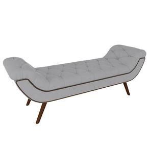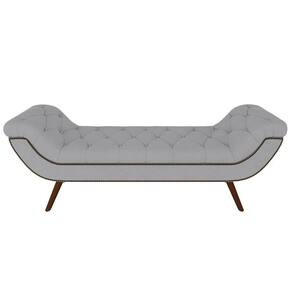 Puff Recamier Calçadeira 140cm Pés Palito Madeira Vêneto P02 Veludo Cinza - Mpozenato