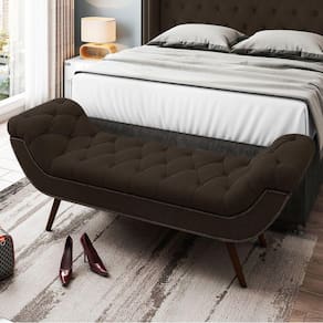 Puff Recamier Calçadeira 140cm Pés Palito Madeira Vêneto P02 Veludo Marrom - Mpozenato