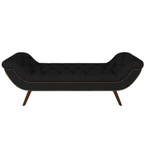 Puff Recamier Calçadeira 140cm Pés Palito Madeira Vêneto P02 Veludo Preto - Mpozenato