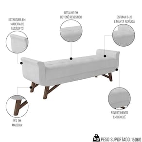 Vamos completar o seu ambiente com um móvel elegante e aconchegante?! Aqui temos a opção perfeita para você! Vem conhecer o Puff Recamier Calçadeira 160cm Base Madeira Neville P02 Bouclé Branco, da Mpozenato!