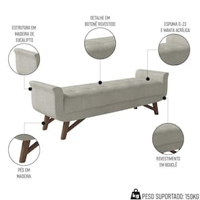 Vamos completar o seu ambiente com um móvel elegante e aconchegante?! Aqui temos a opção perfeita para você! Vem conhecer o Puff Recamier Calçadeira 160cm Base Madeira Neville Z37 Boucle Cru, da Mpozenato!