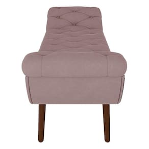 Puff Recamier Calçadeira 195cm Pés Palito Madeira Vêneto P02 Veludo Rosê - Mpozenato