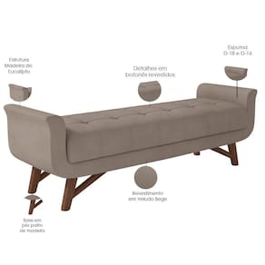 O Puff Recamier Decorativo com Pés em Madeira 140 cm Itália P05 Veludo Bege - Lyam Decor é uma peça singular e elegante. Com design moderno, traz destaque e beleza na hora de compor seu quarto. Seus detalhes em botonê, denotam todo o cuidado e carinho na hora da produção. Com materiais de excelente qualidade e acabamento impecável, seus pés em madeira e revestimento em Veludo combina majestosamente com o restante da mobília. Para ambientes clássicos e refinados, é a composição perfeita para os amantes da elegância! Você merece o melhor, garanta já a sua!!