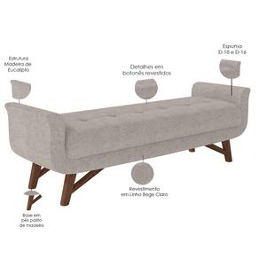 O Puff Recamier Decorativo com Pés em Madeira 160 cm Itália P05 Linho Bege Claro - Lyam Decor é uma peça singular e elegante. Com design moderno, traz destaque e beleza na hora de compor seu quarto. Seus detalhes em botonê, denotam todo o cuidado e carinho na hora da produção. Com materiais de excelente qualidade e acabamento impecável, seus pés em madeira e revestimento em Linho combina majestosamente com o restante da mobília. Para ambientes clássicos e refinados, é a composição perfeita para os amantes da elegância! Você merece o melhor, garanta já a sua!!