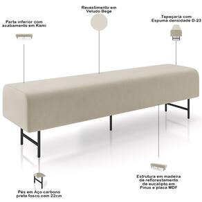 Com um design clean, mas cheio de personalidade, esse puff estilo industrial pode ser aproveitado como recamier no quarto de casal, ao deixa-lo nos pés da cama queen ou como banco decorativo para assento extra na sala de estar, escritório ou recepção; afinal, é um mobiliário criativo que agrega conforto e sofisticação a qualquer ambiente. Além disso, é fabricado com materiais de alta qualidade, a saber madeira de reflorestamento tratada contra mofo e cupins, de modo a garantir a durabilidade e resistência que você procura. Já o conforto e bem-estar ficam por conta da tapeçaria com espuma D-23, permitindo que você relaxe com estilo. Para completar, os pés em aço carbono preto adicionam um toque contemporâneo ao puff, tornando-o uma peça de destaque na decoração de sua casa.