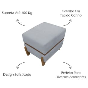 Puff Recamier Kodama Para Cama De Solteiro 50cm Bouclé Cores Pé Castanho - Cinza, Bouclé
