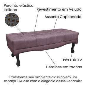 O Puff Recamier Vicenza de 140cm é uma peça de mobiliário elegante e funcional, projetada para adicionar um toque de sofisticação e conforto ao seu ambiente. Sua estrutura é construída com madeira de eucalipto reflorestada mdf, garantindo durabilidade e sustentabilidade ambiental. Os pés são feitos de madeira maciça no estilo Luís XV, proporcionando estabilidade e robustez à peça. A densidade da espuma, classificada como D26, assegura um suporte confortável para o usuário, ideal para momentos de relaxamento e descanso. O tecido em Veludo confere um acabamento suave e luxuoso, adicionando um toque de requinte ao design. Contém detalhes refinados como as tachinhas em metal fumê na borda, no assento contém detalhes em capitonê onde o estofamento é marcado com fios grossos, costurados ao tecido, formando saliências geométricas, enquanto a presença de percinta elástica italiana assegura suporte adicional e durabilidade. Com uma capacidade de suportar até 120 kg, o Puff Recamier oferece conforto e segurança para diferentes usuários. Quanto ao uso, o Puff Recamier pode ser utilizado em diversos ambientes, desde o quarto como um elegante banco no pé da cama, até a sala de estar como um sofá auxiliar ou até mesmo em espaços comerciais, como recepções ou salas de espera, adicionando conforto e estilo onde quer que esteja. Seja como um elemento decorativo ou como um lugar para relaxar, este móvel é uma escolha versátil e elegante para qualquer ambiente.