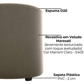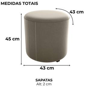 Puff Redondo Copenhage, muito conforto e estilo compacto! Estrutura em Madeira de Eucalipto (de reflorestamento) e MDF, estofado com espuma D20 e revestido em Veludo Maserati. O design redondo é valorizado pelo detalhe de costura vertical nas laterais, além das sapatas plásticas (PVC), suporta até 110 kg. Este produto será entregue em 01 volume.