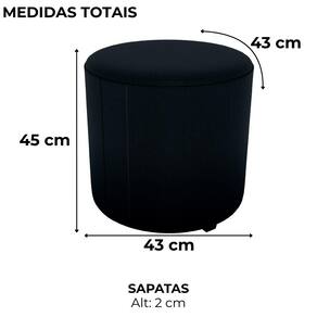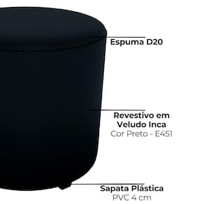 Puff Redondo Copenhage, muito conforto e estilo compacto! Estrutura em Madeira de Eucalipto (de reflorestamento) e MDF, estofado com espuma D20 e revestido em Veludo Inca. O design redondo é valorizado pelo detalhe de costura vertical nas laterais, além das sapatas plásticas (PVC), suporta até 110 kg. Este produto será entregue em 01 volume.