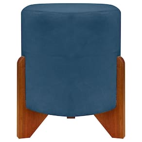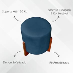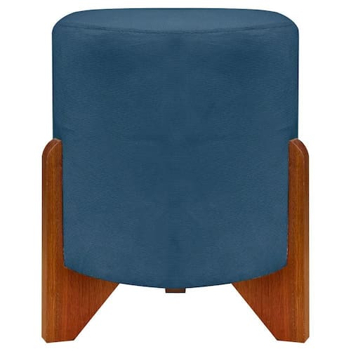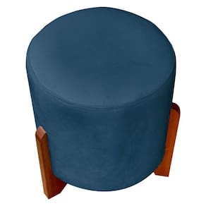 Puff Redondo Eloah Suede Cores Pe Castanho - Azul-marinho, Suede